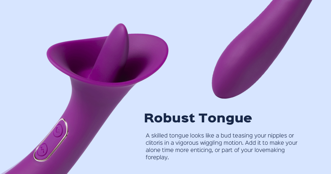 En el otro extremo, la robusta lengua parece un botón que provoca tus pezones o clítoris con un movimiento vigoroso de meneo. Adele, el juguete sexual de lengua, tiene todo para provocarte y complacerte de una manera elegante pero potente. Agrégalo para hacer que tu tiempo sola sea más emocionante o como parte del preámbulo de tu relación sexual.