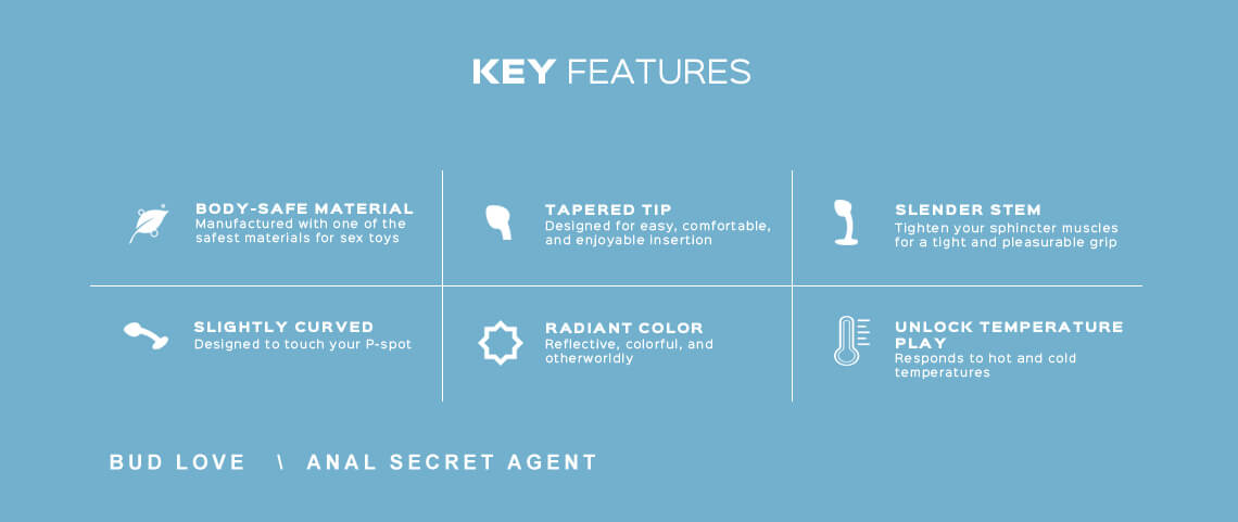 El Bud Love es un agente anal de la familia de los plugs anales. Con su diseño curvado, cuello estrecho y punta cónica en forma de capullo, tiene la forma y longitud perfectas para tocar todos tus botones de placer.