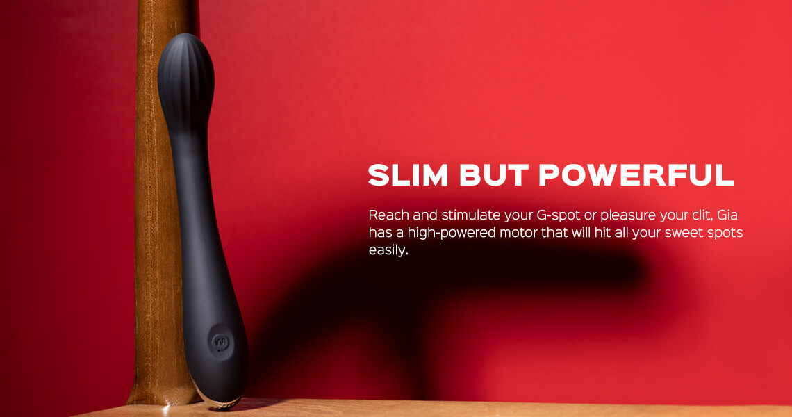 Desde un susurro suave hasta una poderosa vibración salvaje, el vibrador flexible y curvado Gia para el punto G tiene todas las características para provocar y complacer, tanto a principiantes como a profesionales.