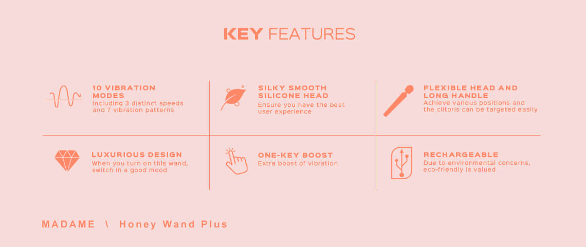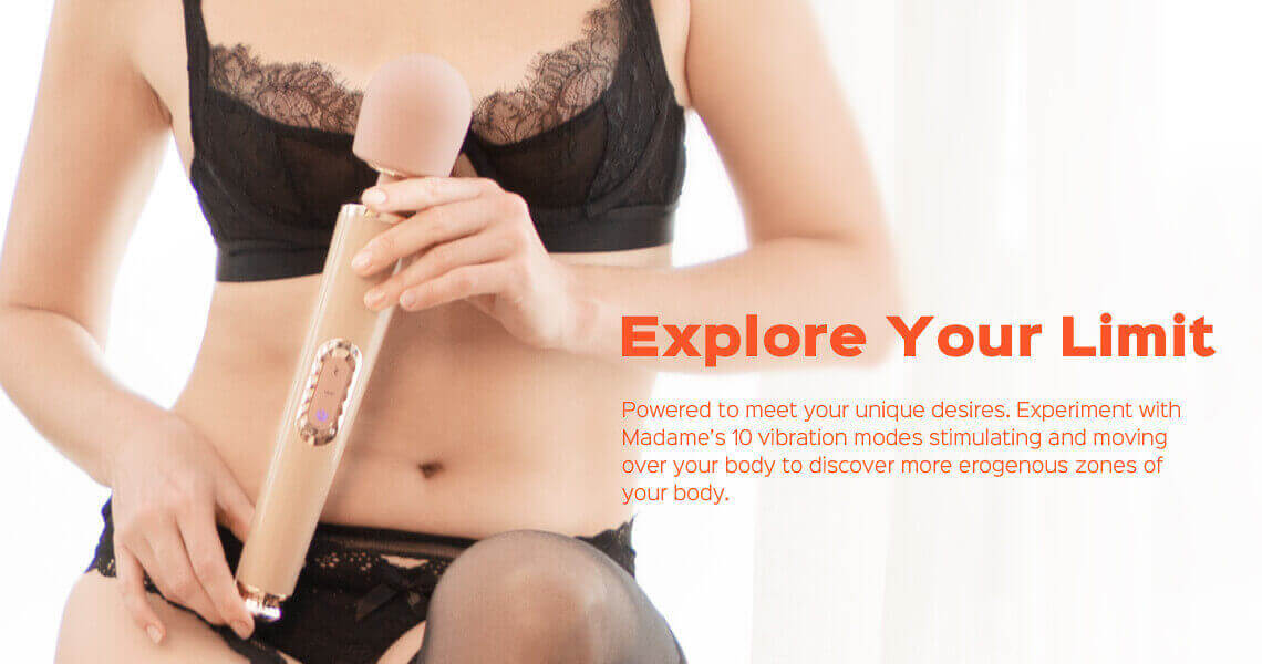 Esta varita vibratoria se distingue de otras varitas hitachi por su lujosa apariencia, una combinación de rosa empolvado y color nude que resulta atractiva y seductora para cualquiera. La silicona segura para el cuerpo y la cabeza flexible le ayudan a desbloquear varias posiciones para disfrutar del placer del clítoris con precisión. Madame es la varita que te introduce en el clímax definitivo del clítoris.