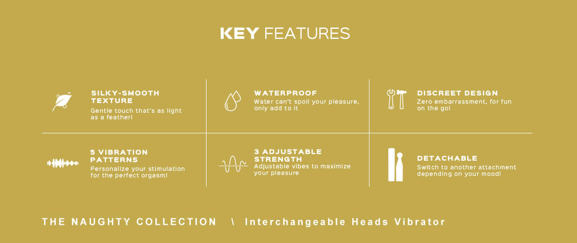 Este paquete incluye un accesorio en forma de lengua y un accesorio con cabezal de contorno único. El cuerpo diminuto de este vibrador en forma de lengua esconde una gran estimulación para tu clítoris en forma de lamidas y toques que te harán estremecer. El vibrador con cabezal de contorno único golpeará poderosamente tu punto G.