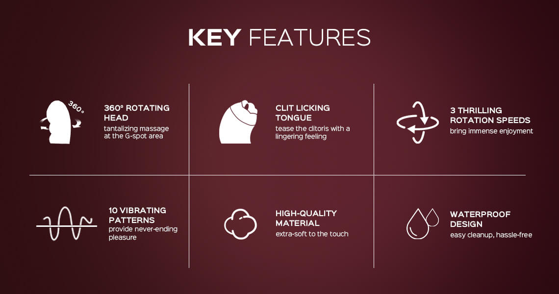 La tête rotative à 360° et la langue vibrante qui lèche le clitoris de Lillian satisfont tous les sens, tant sur le plan esthétique que fonctionnel. Personne ne peut résister à ses puissantes vibrations.